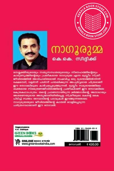 തൻ്റെ പ്രാണനായിരുന്ന ഭർത്താവിന്റെ , അനാഥയും അശരണയുമായ അന്യജാതിയിൽപ്പെട്ട സ്ത്രീയുടെ മകന്റെ കൈ പിടിച്ച് സ്വന്തം തറവാടിൻ്റെ പടവുകൾ ഇറങ്ങുന്നതോടെ നാഗുരുമ്മയുടെ ജീവിതത്തിന്റെ കാതൽ വെളിപ്പെടുന്ന ചരിത്രഗാഥയാണ് ഈ നോവൽ.Write a review on this book!. Write Your Review about നാഗൂരുമ്മ Other InformationThis book has been viewed by users 74 times