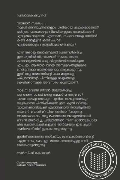 ഏഴ് ദശാബ്ദങ്ങൾക്ക് മുമ്പ് പ്രസിദ്ധീകരിച്ച ഈ കൃതിയിൽ, വയലാർ സമരം നടന്ന കാലഘട്ടത്തിൽ ഒരു വിദ്യാർത്ഥിയായിരുന്ന എം. ഇ. ആർതർ തൻ്റെ അനുഭവങ്ങളിലൂടെ നേരിട്ടറിഞ്ഞ സത്യത്തെ തുറന്നുകാട്ടുന്നു. ഇത് ഒരു സമരത്തിൻ്റെ കഥ മാത്രമല്ല, ചരിത്രത്തിന്റെ പിന്നിലുള്ള ശബ്ദങ്ങളെ കേൾക്കാനുള്ള അവസരം കൂടിയാണ്.